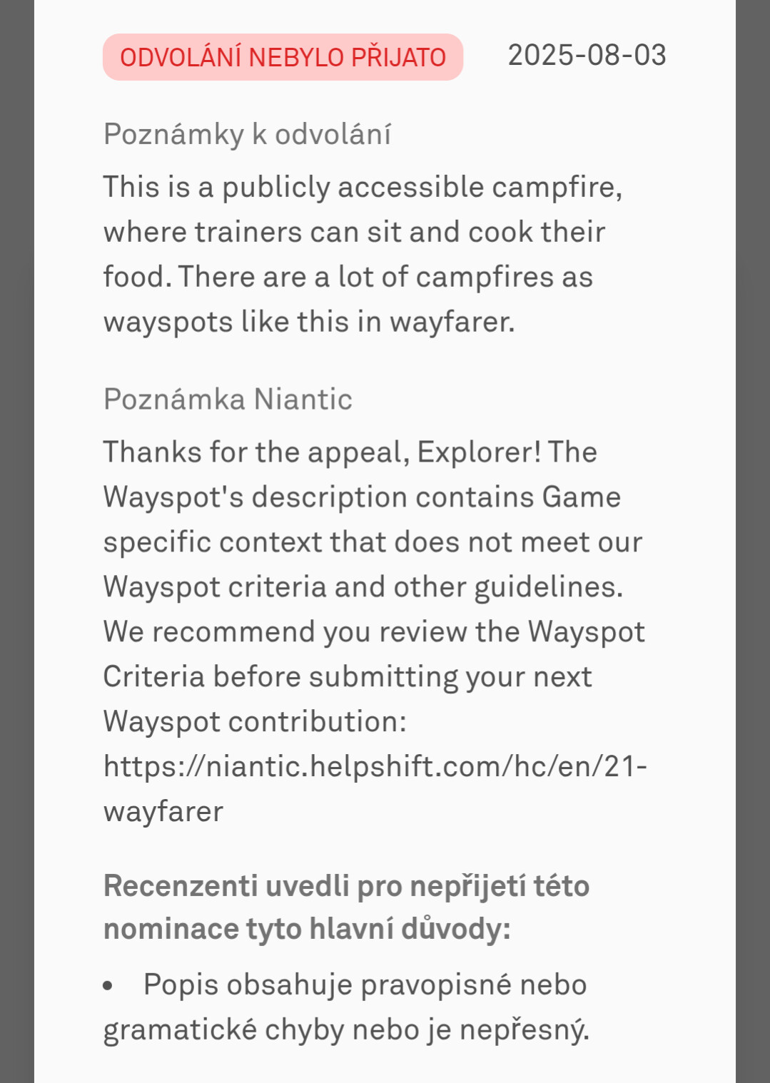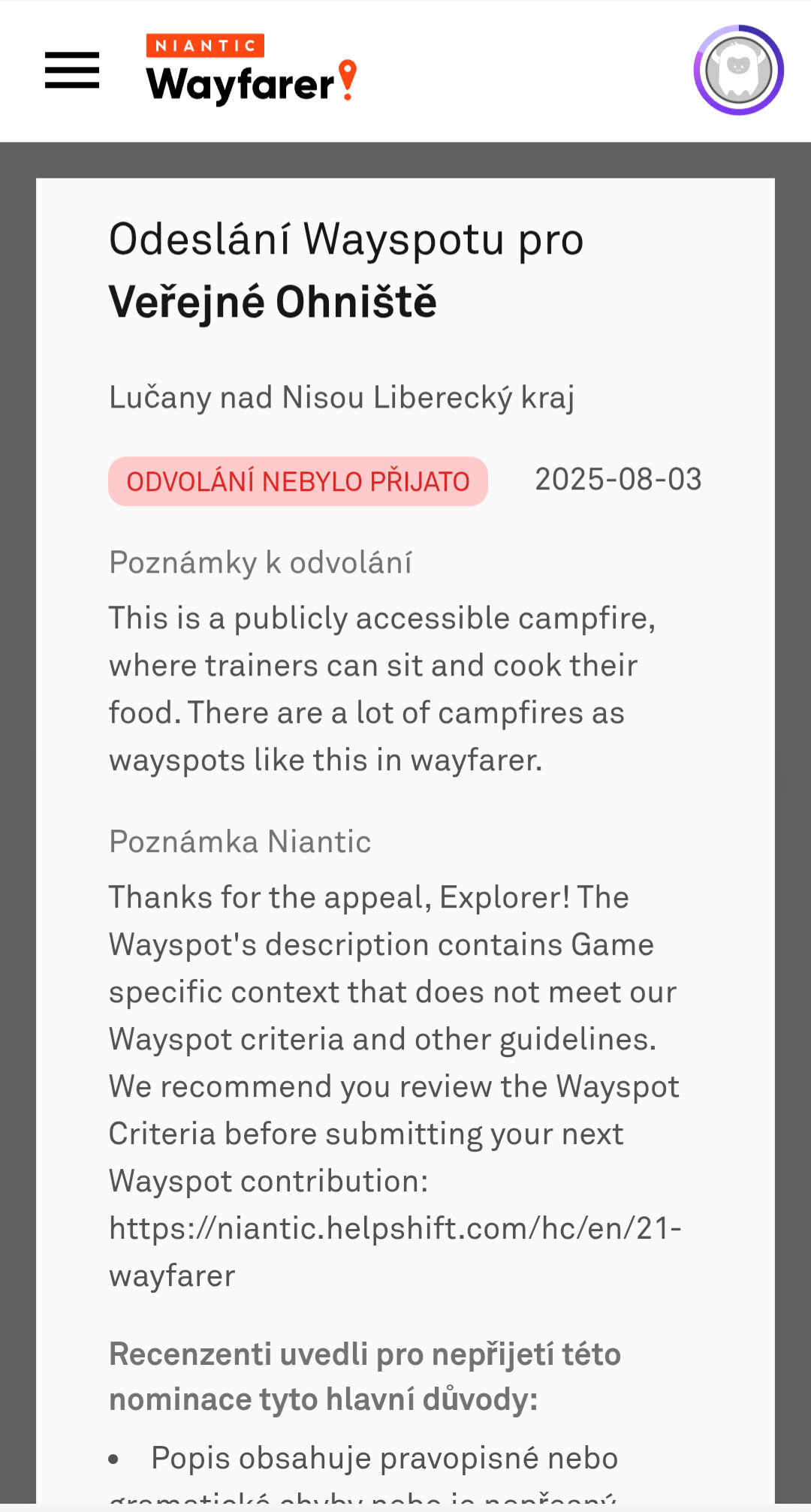 I recently created a wayspot for a public campfire in the woods. It got declined by the ai, so i made an appeal. The appeal was also declined because of the description. Can i submit the same wayspot again, but with better photos and description?