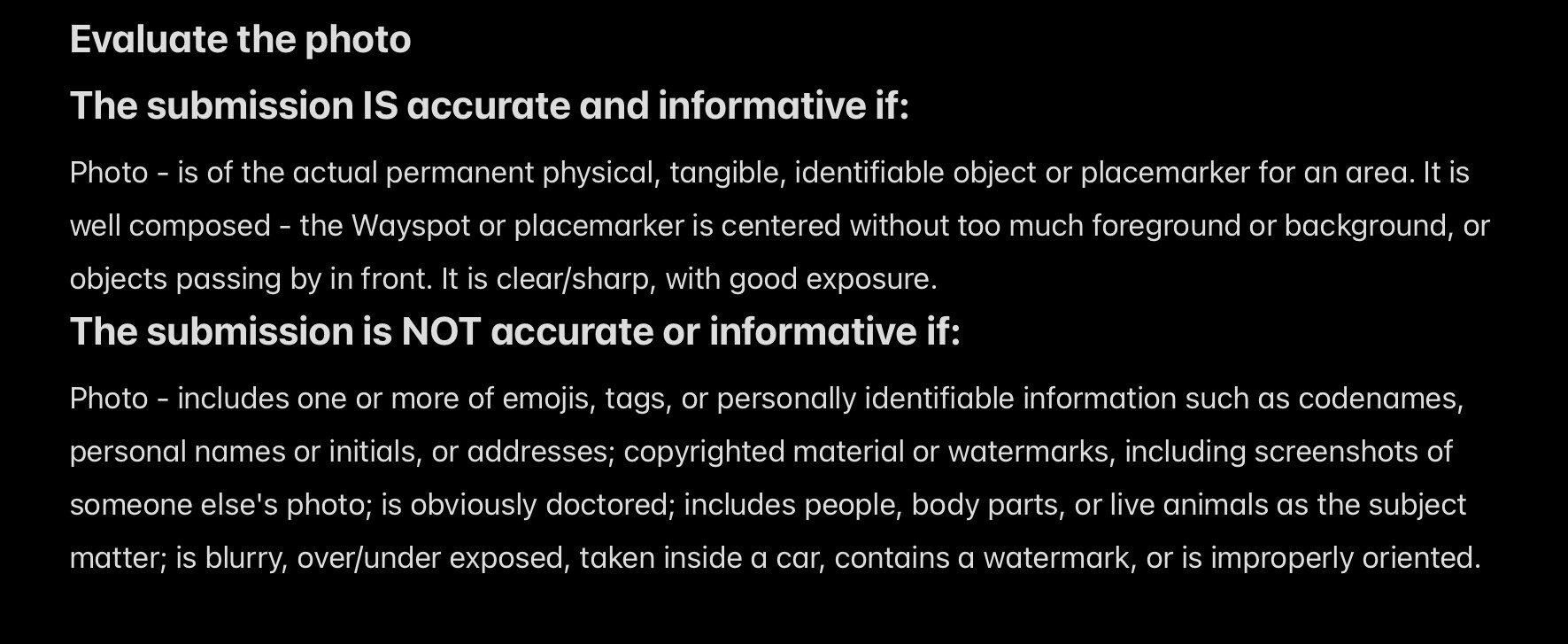 I usually choose “low quality or inaccurate photo” when the picture is poorly centered, or is either too close or too far from the POI. I was wondering if there’s a better way to reject them