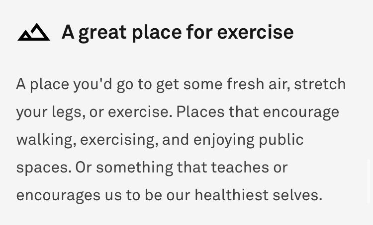 OP do not take: “A great place to be social, A great place to explore, A great place to exercise.” as stand-alone advice. It is not enough. It creates too much bias. What it means to you might mean something else to the person who told you or the person you will tell in the future. You have to look at Niantic’s definition of those terms: