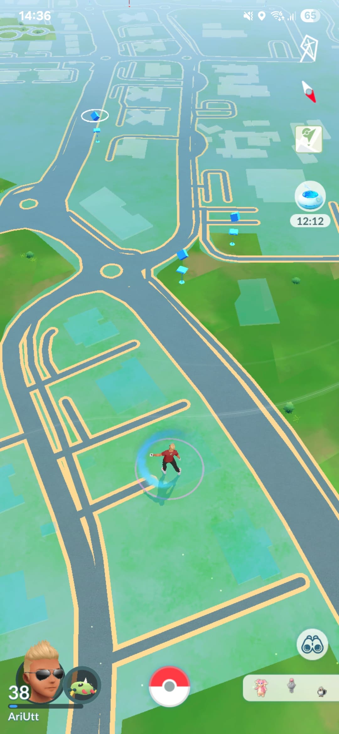 The pokestop you see in the top is incorrectly placed now. It should be more to the south in building located between the two roundabouts closer to the 2 pokestop.