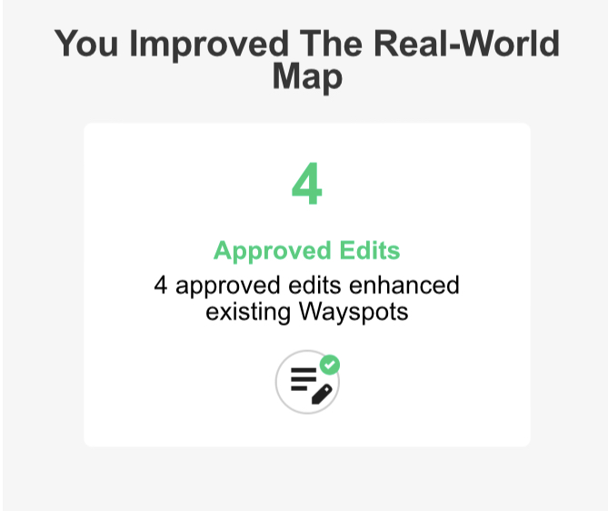 Nice work! You’re one of only 2 I’ve seen so far that have more than me. I’m sure there are people in big areas with a lot of interactions. How many approved wayspots do you have? I have 1889 approved.