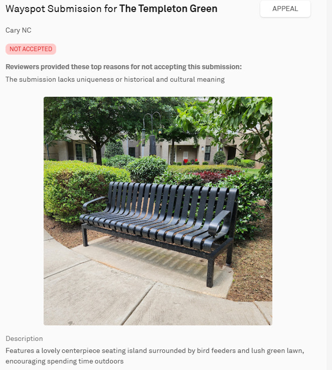 Our team found it did not meet the criteria required to be accepted and has been rejected. This decision could be because of the title, description, location, photo, or a combination of criteria. For future nominations, please review our Wayspot criteria help articles to learn more about what makes a good Wayspot.