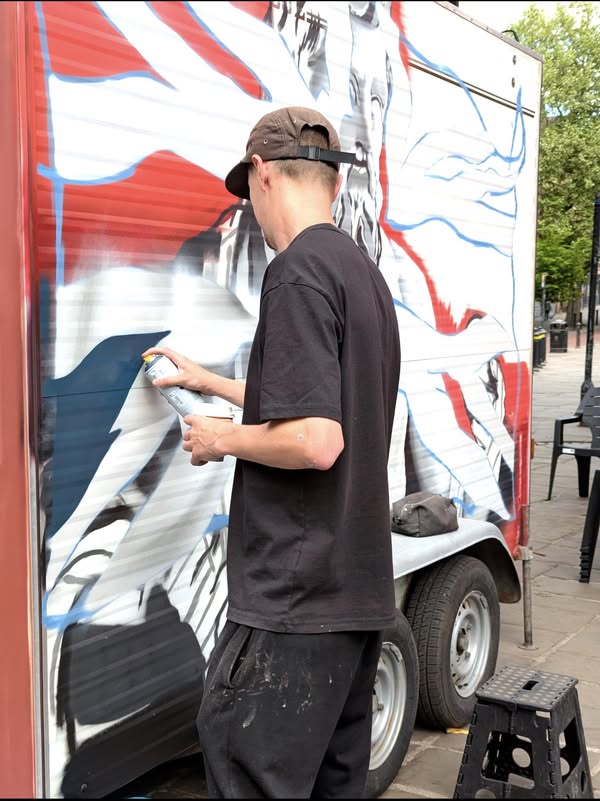 Interestingly, Shawn Sharpe is a local mural artist and this looks like his style (although he hasn’t got the flag right). Can’t find a reference to this picture online though. Agreed, it really doesn’t look like it could be at that location.