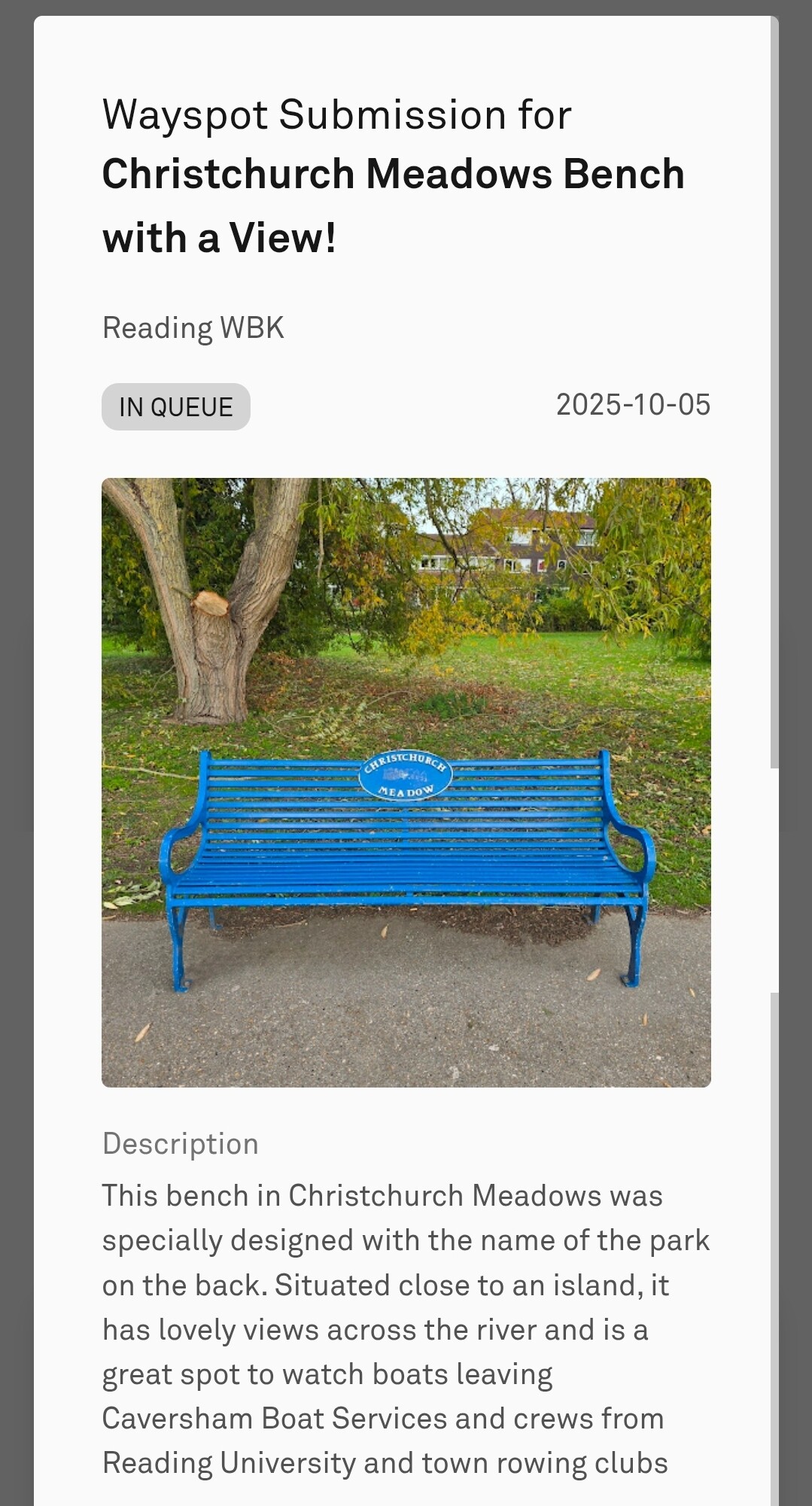 Not to be unkind, but the bench is a very weak nomination to begin with, as benches are typcially only eligible as a viewpoint or if they are particularly artistic. You also have some spelling errors, plus you also talk about the area being neglected, so I donāt think you gave even the most generous reviewer any reason to accept it.