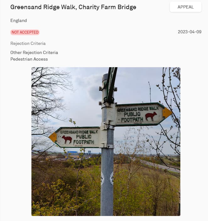 Getting a rejection for a hilariously bad reason. For example, an England Coastal Path trail path (the living coast trail) rejected for being a generic business.